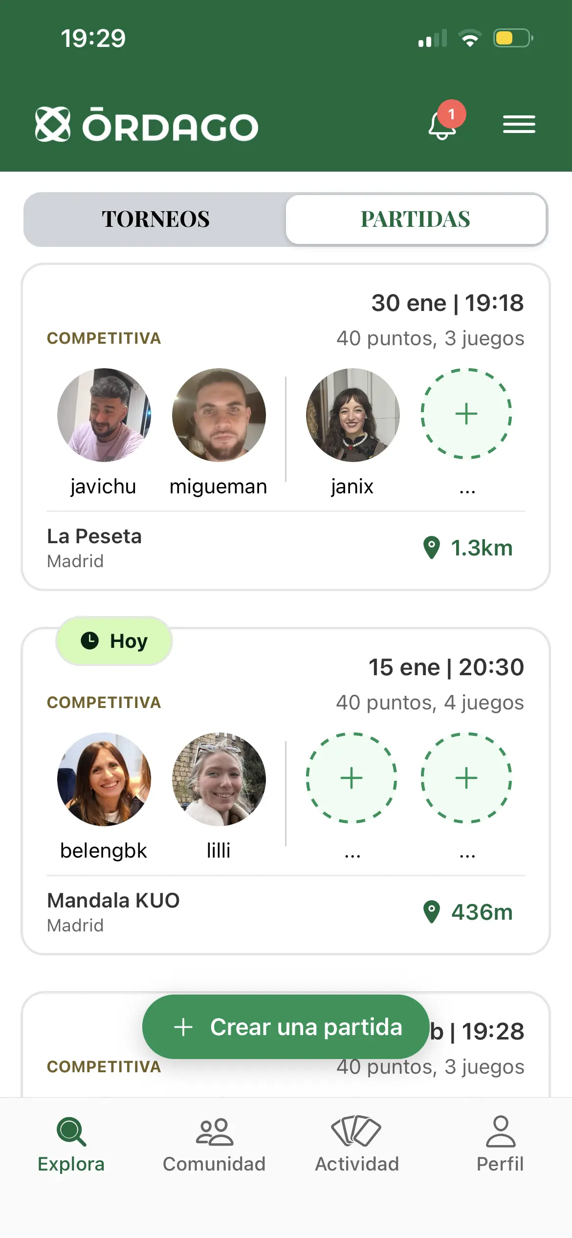 Registra los resultados de tus partidas fácilmente desde la app y suma puntos.